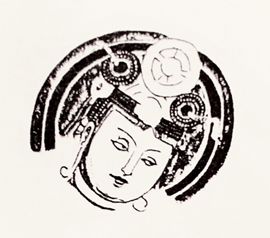 例如克孜尔石窟中一幅被学者们称为“摩耶夫人沐浴图”的壁画,画面上摩耶夫人(乔达摩的母亲)是美妙的裸体少女,脖子上和手腕上有珠宝饰物,围着裆布,披着飘带,两腿交叉,站在一株开着焰火形花朵的树下,树前跪着两个侍女,还有两个姑娘举着水罐正走过来。她们的水罐是希腊式的,她们的衣服有波浪形花纹、暗黄色皱边。这幅画既有希腊风格,又有印度风格。