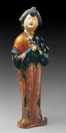 三彩女俑   唐