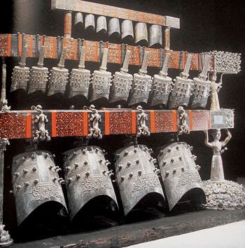 编钟是中国早期典型的乐器,在三千多年前的商代就开始使用,到了西周使用就更普遍了。1978年,湖北随州战国曾侯乙墓出土的编钟,是现今知道的最著名的一套。