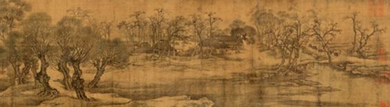 这幅长卷的三部分分别描画乡野、河流和街衢之景,各部分以一个重点景色为中心,初段着重画杨柳,中段以桥梁为中心,末段则以城门为中心。在重点景色的统领下,画面虽然繁杂,但不显得混乱。三段的气氛也有分别,开始的时候平静悠远,气氛恬淡;中段紧张刺激,如激流回旋;而末段既开阔丰富,又琐屑细致,像是路边行人的娓娓细谈。