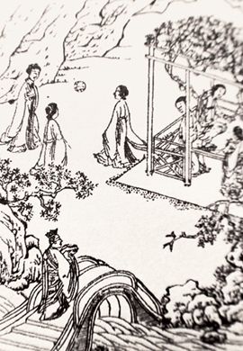 明刊本《西游记》盘丝洞蜘蛛精蹴鞠图