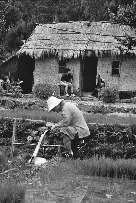 我们所考察的山中,有一座叫太姥山,就在福建省东北部。在路上,我们碰到一位居士,他把我们带到一个山洞前,洞里有一位八十五岁的老和尚,他在那儿已经住了五十年了。在我们交谈的过程中,老和尚问我,我反复提到的那个“毛主席”是谁。他说,他是1939年搬进这个山洞的。当时这座山的山神出现在他的梦里,并且请求他做这座山的保护者。从那时起至今,他再也没有下过山。弟子们和当地村民给他带上来他所需要的为数不多的物品:面粉、食用油、盐,还有每五年左右一条新毯子或一套新衣服。他的修行方法是持名念佛,念阿弥陀佛。“阿弥陀佛”的意思是“无量光佛”、“无量寿佛”。爬过那么多座山,遇到过那么多隐士之后,我们终于慢慢地明白了“无量”的含义。