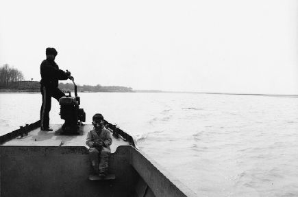 船老大那天还带着他的儿子。那孩子十岁左右,戴着京剧脸谱,紧挨着他的父亲坐在船尾。我问他唱京剧里哪个行当的角色,他没吭声。返回岸边的途中,船老大放慢速度帮了两个男孩,他们正艰难地逆流划船过河。那天放假,他们是想去钓黄河鲤鱼的。黄河鲤鱼是开封的特色菜,做法是把鱼煎熟之后浇上糖醋汁。 船老大扔给两个孩子一根绳子,把他们拖在我们后面。两个男孩随后送给船老大一条鲤鱼作为酬谢。