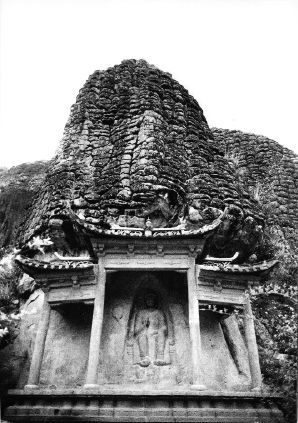 我花了好几分钟跟她解释,才使她相信我不是来带她去阴间的。她以前从未见过外国人,像我这样留这么长胡子的人见得更少。她说:“那么,你不是地狱来的,你是哪儿来的?”我问她有没有听说过洛杉矶,这也不起什么作用,她根本没听说过洛杉矶。说服她费了不少劲,但当她终于明白我不是来取她的灵魂时,她笑起来,边笑边告诉我沿着山岭走到下面的河谷就是。我按她指的路走到谷底,发现了我平生见过的最震撼人心的石刻佛像。