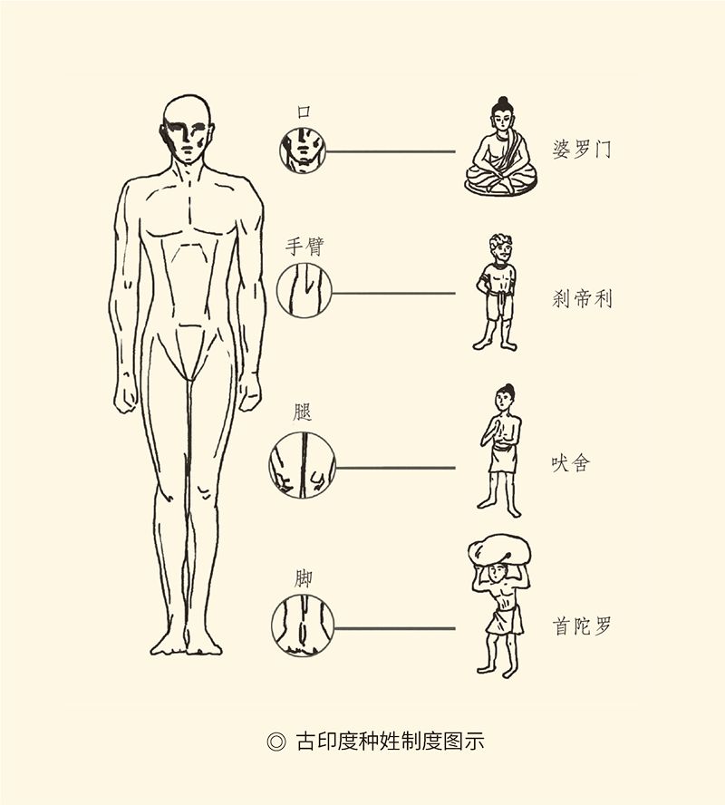 此外还有“旃荼罗”,也就是贱民,是“不可接触者”,比首陀罗地位还低。