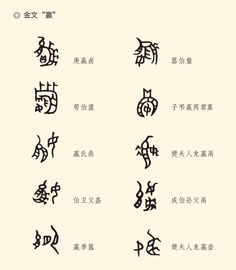 如此复杂多变的字形,实在让人看得眼花缭乱。文字学家的解释则有两种,多数学者认为嬴就是蜾蠃(读如果裸,细腰蜂),但也有人认为是龙。不管怎么说,都证明秦族起源很早,而且是由母系氏族变成部落的。