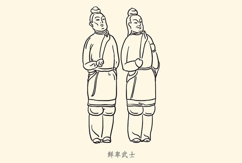 汉族服饰特征为宽袍大袖,喜高冠长袍。鲜卑族喜窄袖且上衣下裳分开,具有鲜明的游牧民族服饰特征。