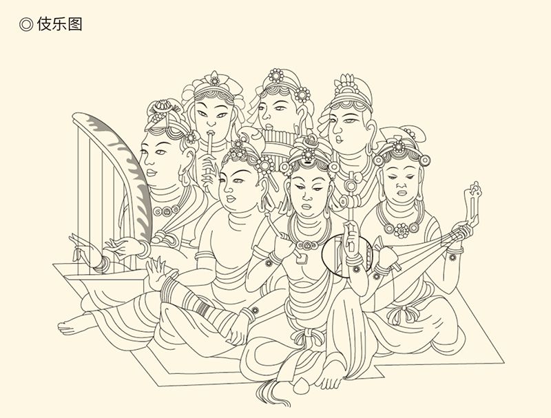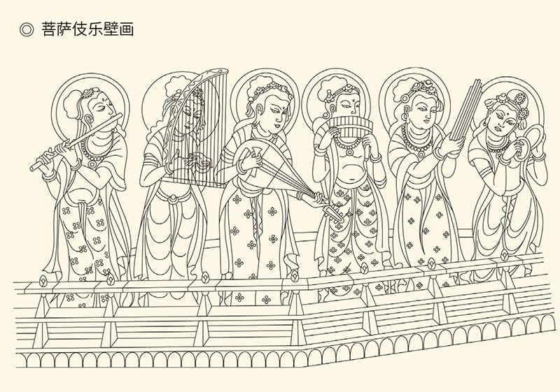 开明的态度和开放的政策,造就了文学艺术的生机勃勃和百花齐放。丝绸之路则不但让长安胡商云集,也把这座城市变成国际化大舞台。西域的胡旋舞,中亚的柘枝舞(柘读如这),印度的婆罗门曲,都在这里风靡一时,成为皇家与民同乐的保留节目。这些盛大场面记录在敦煌壁画中,显示出的打击、弹拨、吹奏、拉弦等乐器多达四十余种。[24]