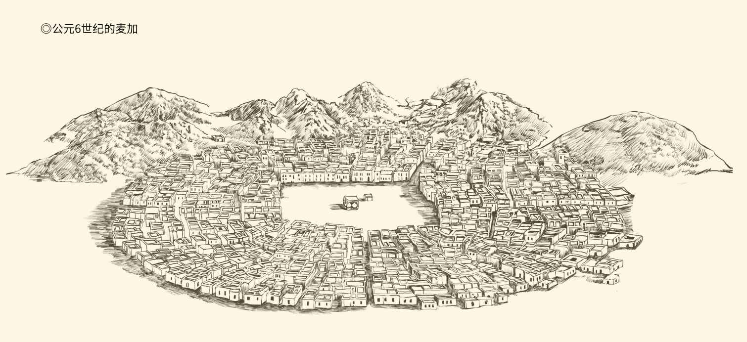 神奇而神圣的黑陨石和渗渗泉,让麦加在成为伊斯兰教第一圣地之前就成为阿拉伯人的朝觐中心,也为这座城市赢得了和平。隋文帝开皇六年,也就是穆罕默德十六岁的公元586年以后,麦加被各部落约定为不得斗殴的禁地,管理事务和维持秩序的监护权则被交给了古来氏人。[6]