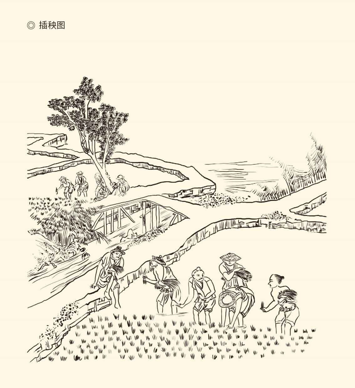 据清宫廷画家焦秉贞所作《御制耕织图》1696年版本。该图册含耕种图23幅、纺织图23幅,每幅图配康熙诗一首。