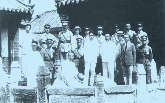 1929年夏,蒋介石(前坐者)登泰山时与戴笠(后排左一)等合影