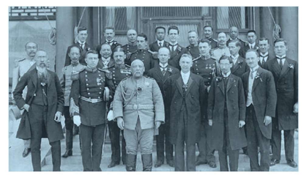 袁世凯与各国公使合影。在袁世凯就任临时大总统后不久,曾经明确拒绝孙中山的“五国银行团”(加了日本)随即放款2500万英镑
