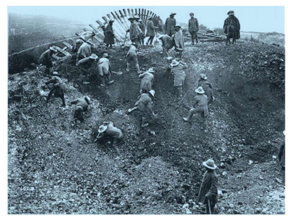 在法国的朱桂生还算是幸运的。英国招收到华工后,直接把他们都投放到了前线:挖掘战壕,修筑工事,掩埋尸体,清扫地雷,修路架桥……英国人用华工替代了自己国家的码头工人和运输工人,让他们承担了最艰苦、最繁重,甚至是最危险的工作。