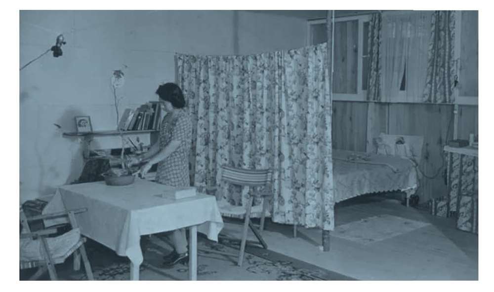 房间里没有自来水,营房每个区共用一个洗衣房、食堂、厕所和露天淋浴室——妇女们不得不在站在高高岗哨上的看守注视下洗澡。当她们提出反对意见时,看守反问她们:“你们现在是美国人吗?”