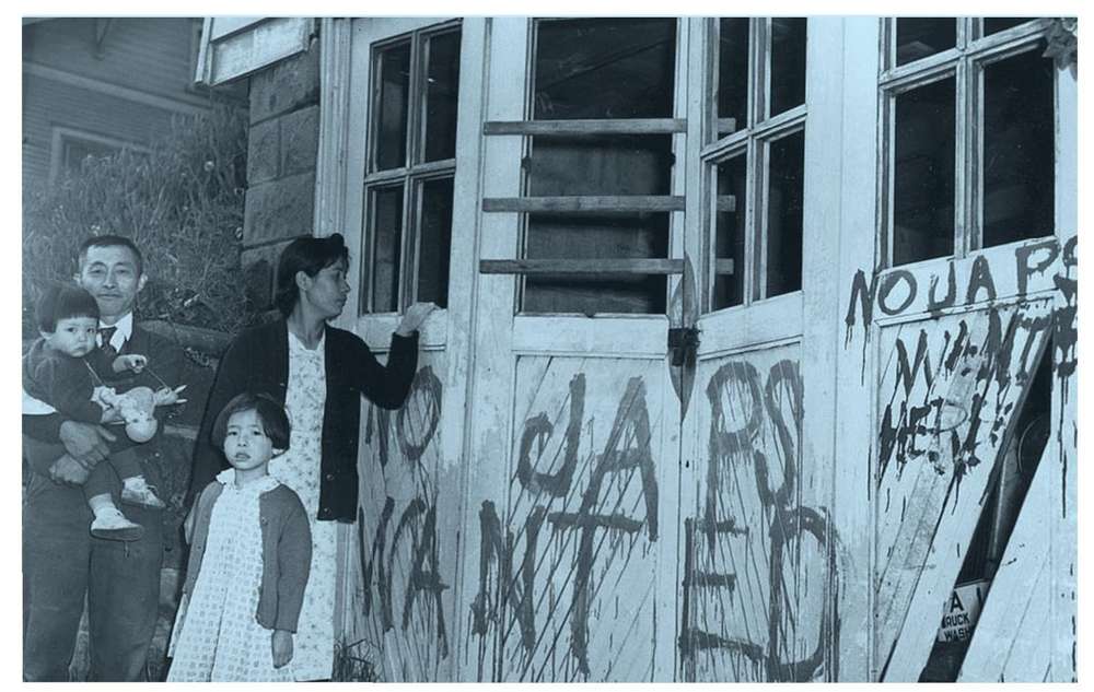 1945年5月10日,一个西雅图的日本家庭从安置中心返回家里,发现玻璃已全被敲碎,家里被洗劫一空,还到处喷了反日标语
