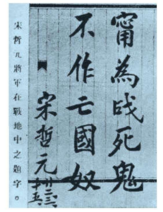在“长城抗战”期间,宋哲元手书“宁为战死鬼,不作亡国奴”,感动无数国人