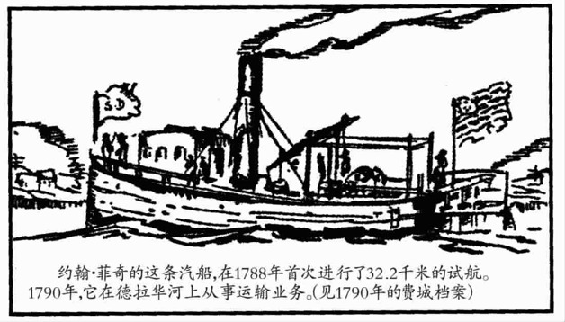 可怜的约翰·菲奇,他曾经是最早将“蒸汽船”用于商业运营的,现在却悲惨地死去。当他建造的第五条螺旋桨汽船不幸被毁时,菲奇已经落到倾家荡产、一贫如洗的地步。他疾病缠身,遭到邻居们无情的嘲笑,就像100年后人们嘲笑兰利教授发明奇怪的飞行器一样。可怜的菲奇一直希望为自己的国家开辟一条通往中西部大河的便捷途径,可他的同胞们却宁愿乘平底船或步行。1798年,菲奇在极度绝望中服毒自尽了。