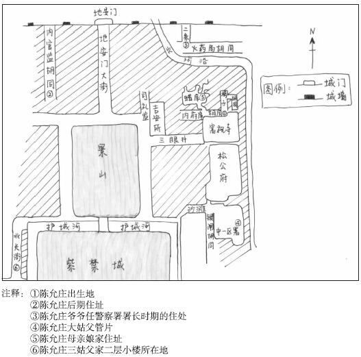 附图二:陈允庄所述居住地点与活动区域图