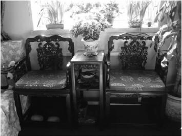 张家摆放在客厅的清代太师椅(定宜庄摄于2003年)