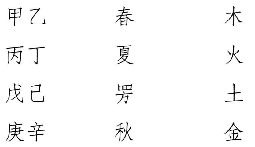 并相信五行递旺于四季:春季木旺,夏季火旺,秋季金旺,冬季水旺。于是依纪日天干之循环,春季逢天干为甲、为乙之日恰对应于木,而木是旺于春季者,则春季逢天干为甲、为乙之日即“王相”之日;夏季则轮到纪日天干为丙、为丁之日,火旺,……其余可类推。至于戊己土旺,则是每季抽出十八日,硬与五行相配,对应于土,并为之造出一个怪字“