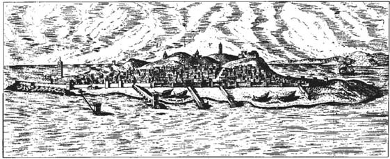 葡萄牙人遵照传统,发出“圣地亚哥!”的呐喊,然后展开他们的旗帜。喇叭齐鸣,战鼓擂响,战船驶入河道。舰队经过时,岸上和河对岸一个小岛上的穆斯林大炮做好了准备。阿尔梅达挑选了自己最旧的一艘船“圣灵”号去打头阵,一边前进一边测深,并承受敌人的第一波攻击。“圣灵”号两面遭到炮击,“弹丸横飞,仿佛碎石的暴雨”,[4]甲板遭到火力横扫。十人死于炮击,但舰队通过狭窄的河口继续前进,一艘一艘地逼近了他们选定的目标。