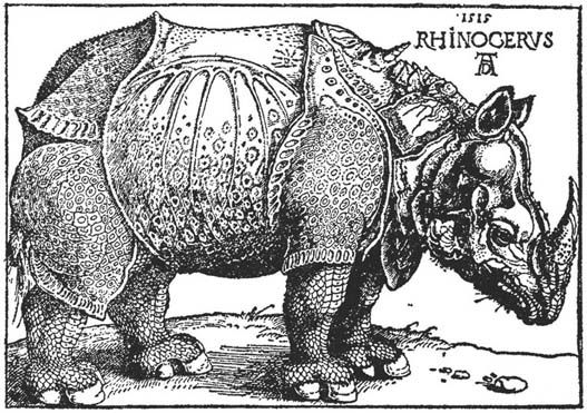 曼努埃尔一世给教皇的另一件礼物犀牛更倒霉。它戴着一个绿色天鹅绒项圈,从里斯本坐船出发。1515年,它乘坐的船在热那亚沿海失事沉没。犀牛因为被锁着,溺死了,后来被冲刷到海岸上。它的皮被剥下,送回里斯本,做成了标本。阿尔布雷希特·丢勒读到了一封描绘这头犀牛的信,可能还看到了一幅素描。他没有亲眼看过这头犀牛,但为它制作了那幅著名的图画。