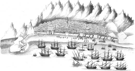 在遭到敌人围攻的塔楼内,葡萄牙士兵遭到越来越猛烈的箭矢和长枪的袭击。若热·达·西尔韦拉瞥见总督的身形,向下喊道:“大人,帮助我们,否则我们就全都死了!”[8]阿尔布开克在嘈杂中回答道:“我帮不了你们。用绳子爬下来吧!”有些人成功地沿绳索爬下来,其他人冒险跳墙,还有人则拒绝逃跑。有一个葡萄牙人坐到胸墙上,俯视城下,画了个十字,然后跳下来。结果他跌断了一条腿,几天之后伤重而亡。一名来自某艘船上的炮手比较幸运,他一手握着弩弓,跳下城来,大难不死。加西亚·德·索萨拒绝逃跑。“我可不是用绳子逃命的人!”[9]他喊道。这是毫无意义的勇敢。没过多久,一支箭射穿了他的脑袋,他死了。很快,穆斯林士兵就占领了塔楼,将葡萄牙人的首级插在长枪上,向下挥舞。葡萄牙人只得撤退。