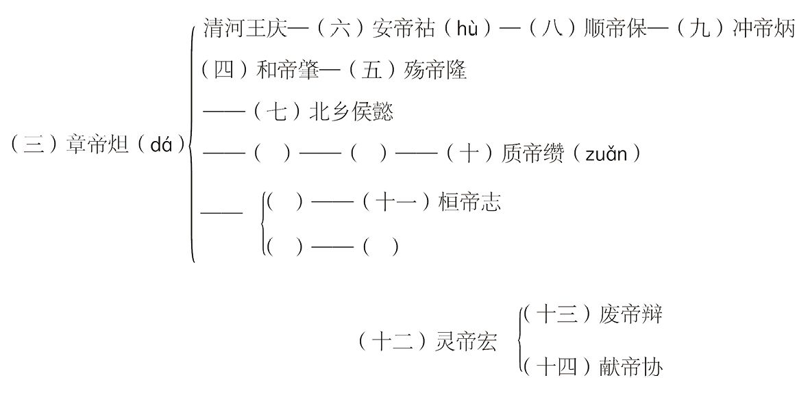 后汉的政治,坏于外戚宦官的专权;而外戚的专权,起于和帝之世。先是章帝皇后窦氏无子,贵人宋氏生子庆,立为太子。梁氏生子肇,窦后养为己子,后诬杀二贵人,废庆为清和王,而肇立为太子。章帝崩,肇立,是为和帝,太后临朝。后兄宪为大将军,专权骄恣。和帝既长,和宦官郑众谋杀之。是为后汉皇帝,与宦官谋诛外戚之始。和帝崩,殇帝立,生才百余日,明年,又崩。太后邓氏,迎立安帝,临朝凡十五年。邓太后崩后,安帝自用其皇后之兄阎(yán)显。又宠信诸中常侍,和乳母王圣等。阎皇后无子,后宫李氏生顺帝,立为太子,阎皇后谮(zèn)废之。安帝崩,阎后迎立北乡侯,未逾年薨;宦者孙程等迎立顺帝,杀阎显,迁阎后于离宫。顺帝用后父梁商为大将军。商死后,子冀继之,专恣较前此之外戚为更甚。顺帝崩后,子冲帝立,一年而崩。冀与太后定策禁中,迎立质帝。质帝虽年少,而知目冀为“跋扈将军”,遂为冀所弑,迎立桓帝。桓帝和宦官单(shàn)超等合谋,把梁冀杀掉,于是后汉外戚专权之局终,而宦官转横。