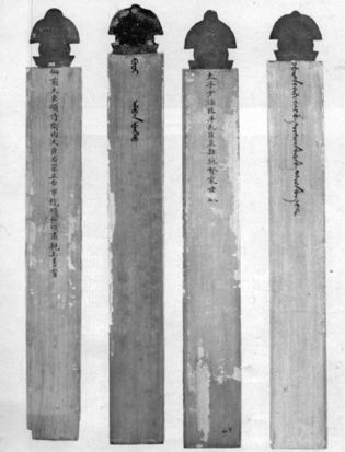 绿头牌并不仅仅在召幸后妃时使用,凡觐见皇帝者,皆用粉牌书写姓名呈上。图为清末肃亲王和袁世凯觐见时所用头牌。