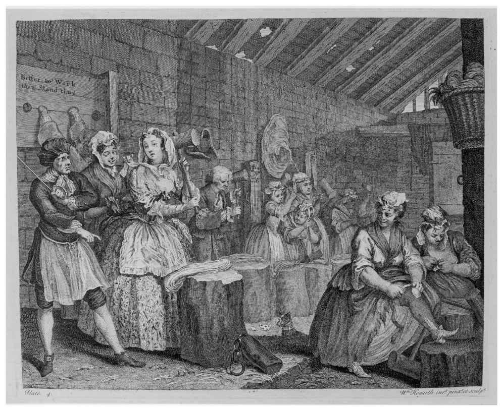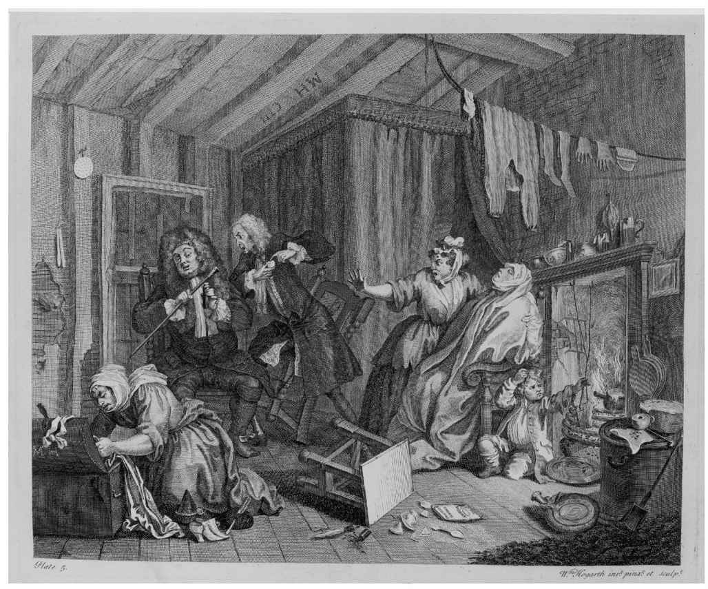 实际上正相反,正是由于这些二手、三手的复制与引用,荷加斯的画作才能得到最广泛的流传。在1723年,《一个妓女的历程》只印了1240套,只有个人订购者才可以得到它们,而其昂贵的价格(每套21先令)是普通人难以承担的。因此,其画作广泛而持久的影响应主要归功于无数的仿制、改编与引用,这些东西才分布更广、更易得。它们将原作传播至千家万户。
