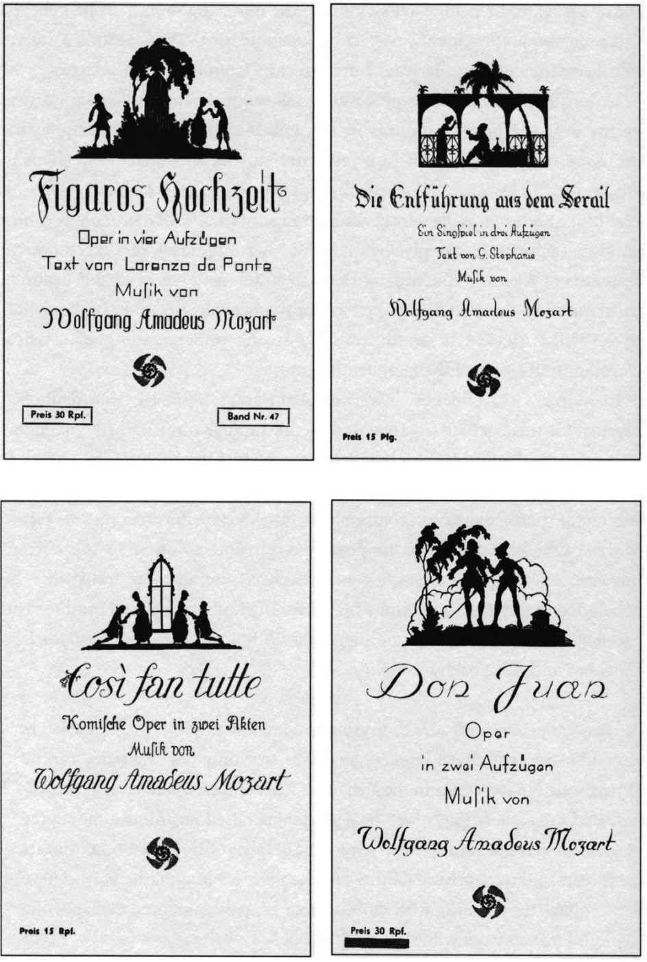 8.柏林的艾米尔·维尔尼茨(Emil Wernitz)公司在1938年和德意志 劳工阵线下属国家社会主义文化机构“力量来自欢乐”的工余活动部 联合出版的莫扎特歌剧剧本封面。请注意达·蓬特的剧作者身份 只出现在《费加罗的婚礼》封面 上。