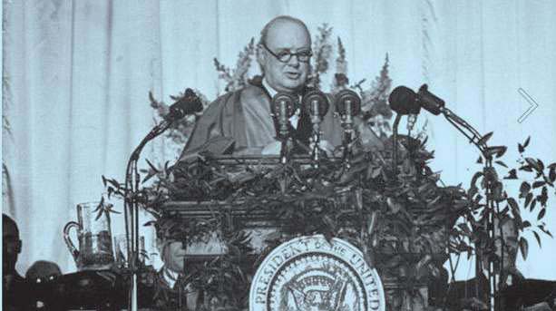 1946年3月5日,访美的丘吉尔在美国总统杜鲁门的母校威斯敏斯特学院发表了题为《和平砥柱》的演说。
