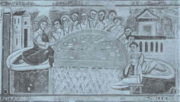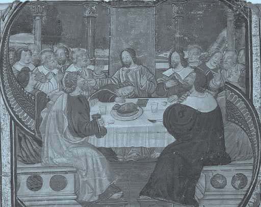 卡普阿的《最后的晚餐》,犹大被画作去伸手拿饼的人,因为耶稣说:“正准备去接基督蘸了汤的饼的那个人便是出卖了我的那个人。”