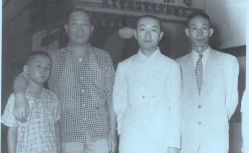 1952年,吴清源访问中国台湾。右起:应昌期(当时台湾围棋协会干事)、吴清源、周至柔(台湾围棋协会理事长),最左边那个小孩,就是后来著名的棋手林海峰,当时10岁