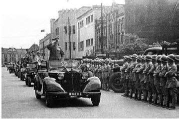 【图:政府迁台首次国庆阅兵,时任台湾省主席的陈诚检阅陆军。(谢之鹏摄1949)】