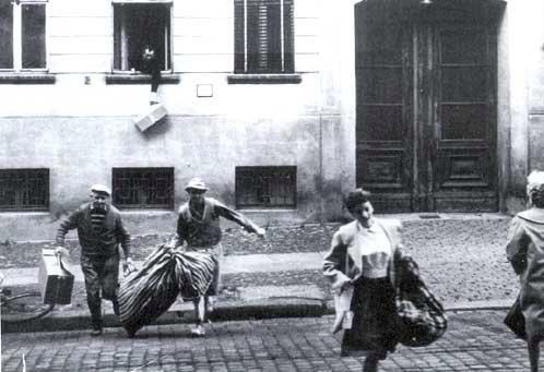 (1961年8月13日,由处于分界线的楼内逃往楼外的西柏林)