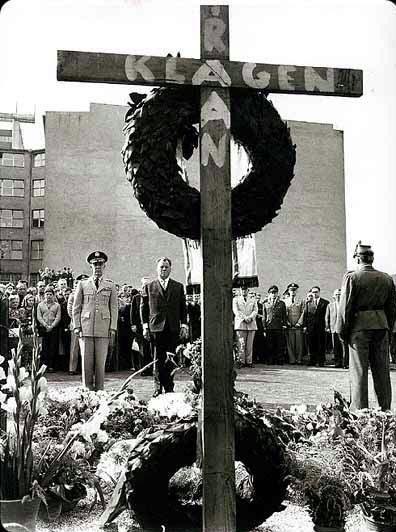 一是在1961年,柏林墙正在竖起,那个时候,柏林墙还是“透明”的铁丝网,就隔着那一道铁丝网,千万德国人交谈着,互相安慰着。我注意到很多这样的镜头,一对衣冠整洁的中年夫妇,镇定的安慰着对面的年轻人,而那青年已经泪流满面,泣不成声。