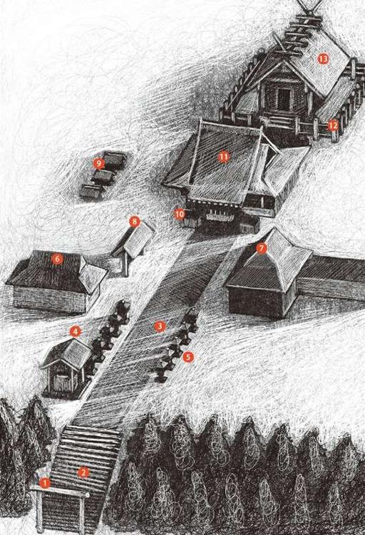 ① 额束 ② 笠木 ③ 岛木 ④ 贯 ⑤ 柱 ⑥ 台石
