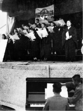 图四 1940年代,天津东亚公司公教信友协进会的唱诗班在排练。