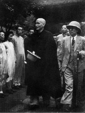 1944年校庆时,蒋介石莅校训话,右为教育长程天放。