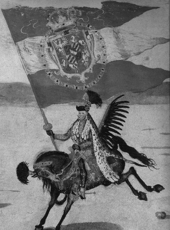 ◎ 手持波兰-立陶宛联邦旗帜的波兰翼骑兵(旗手)形象(原画收藏于瑞典斯德哥尔摩)。