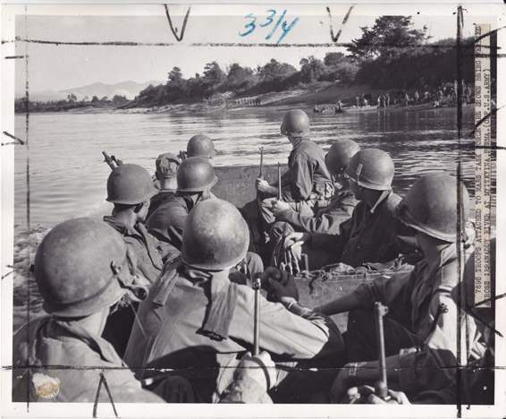 1945年1月5日美军陆战队横渡缅甸境内河流