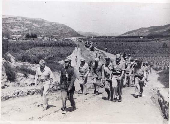 General Wang Chen,Commander of the359th Brigade of the18th Group Army leads members of the Section to hisheadquarters after arrival in Yenan.