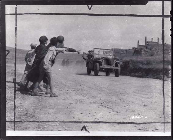 中国西南某地,中国孩子们沿着小道跑到路边,竖起大拇指迎接美国人,口中大喊“顶好”。在这片中国内地没被占领的军事道路上行进着的美军人员深知这一动作的善意。