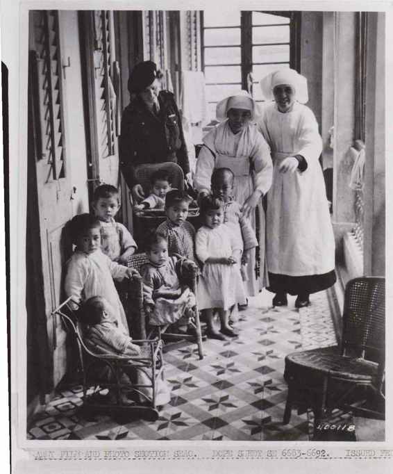费里斯·霍布斯小姐和圣保罗医院的孤儿以及修女们。霍布斯女士和她的妹妹乔安主持着这家由英国红十字会资助的医院以及孤儿资助。