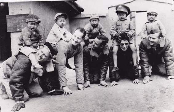 在中国的美国大兵们和他们收养的缅甸孤儿们合影。