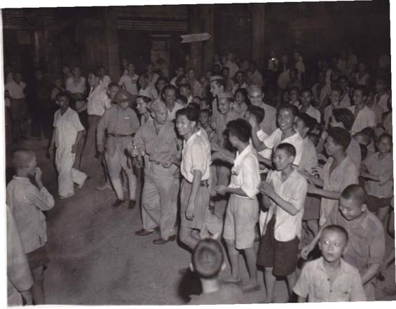 American soldiers and Chinese mingle in the wildly cheering.Crowd in Chungking that greeted the first unofficial announcement of Japan's willingness to surrender,on the night of10August1945.