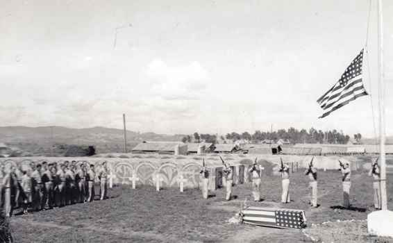 Rifle-Gun Salute at the Burial Services at the U.S. Army Cemetery, Kunming, China for S/Sgt Michael W. Shepherd of Route #1 Short Creek, West Virginia, 54th Service Squadron,68th Service Group Kunming, China.