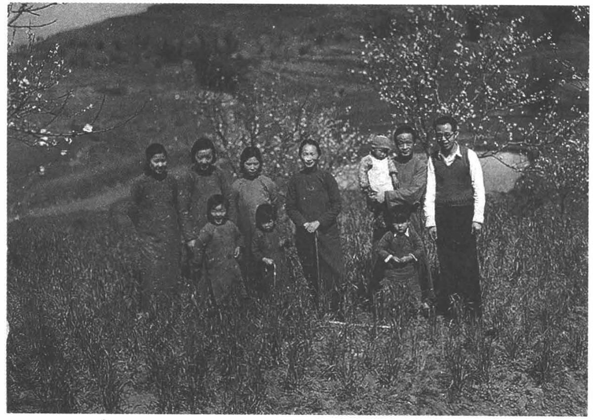 1941年3月,春到栗峰,桃花盛开。右起逯钦立、董作宾、陈启华等。