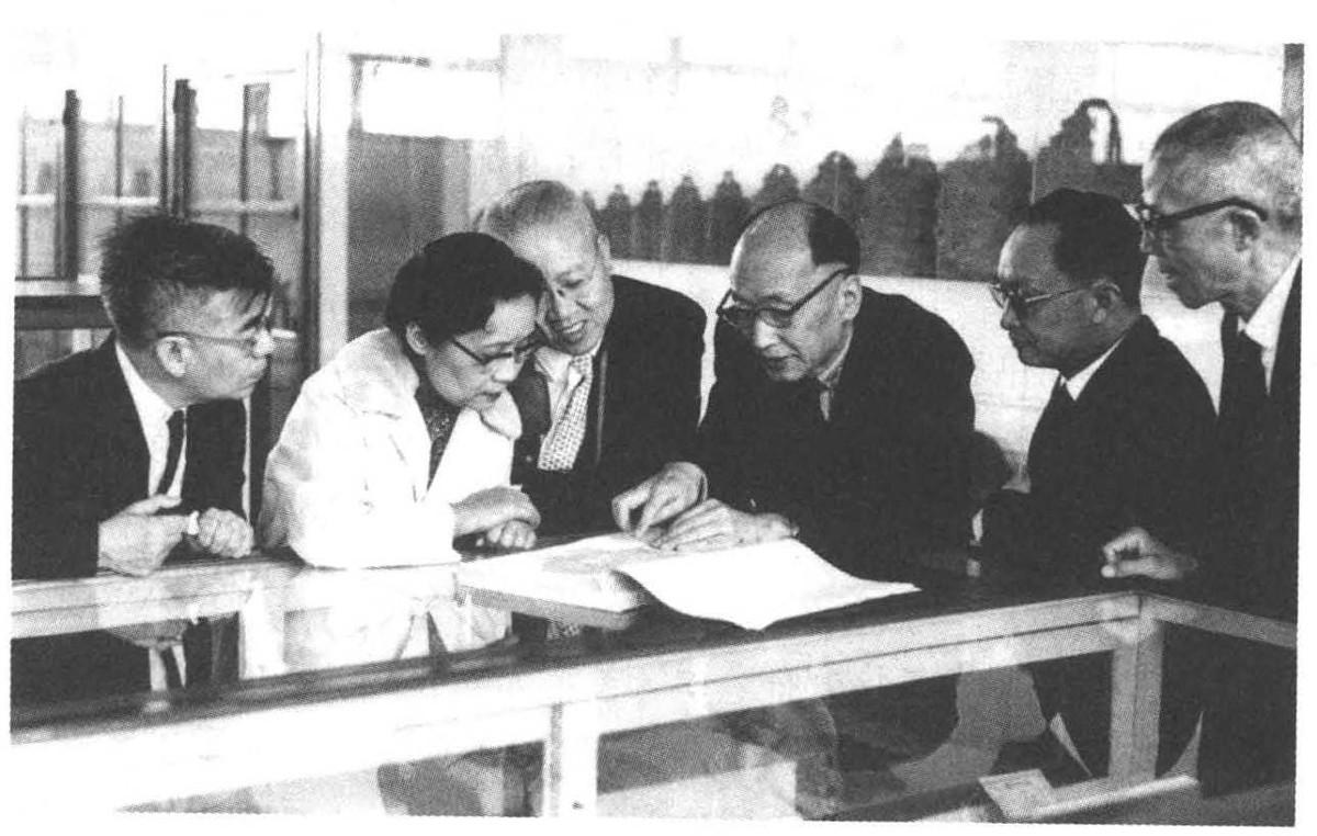 1962年2月24日,“中研院”第五次院士会议(胡适去世的那一天)。李济向海外与会院士解说安阳出土器物的情景。左起:吴大猷、吴健雄、袁家骝、李济、刘大中、李光宇。